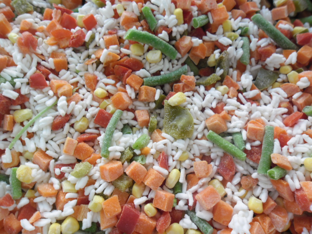 Le mélange de riz est préparé sur la base de divers légumes surgelés, qui sont soigneusement mélangés. Le mélange contient les ingrédients comme: riz blanc, petits pois, haricots, maïs sucré et poivrons rouges.